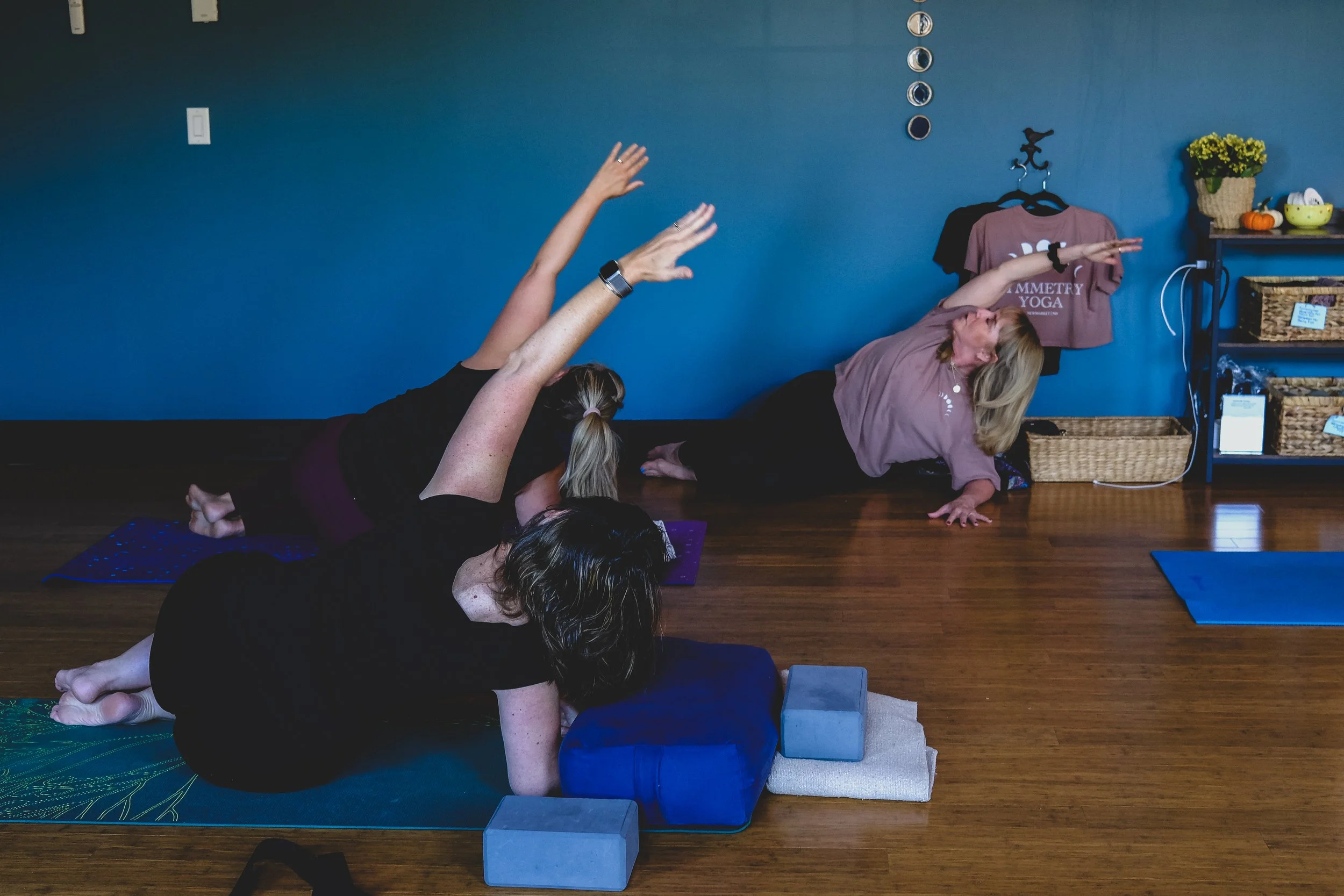 Symmetry is proud to be one of the few studios with two certified yoga therapists on staff. Yoga therapists receive extensive training—comparable to a Master’s-level education—preparing them to work with clients facing specific health conditions. They provide customized tools and practices designed to support optimal physical, mental, emotional, energetic, and spiritual well-being. As healthcare increasingly emphasizes prevention and holistic care, yoga therapy offers individualized or small-group sessions that empower clients to create meaningful, lasting change in their bodies, minds, relationships, and self-care practices.